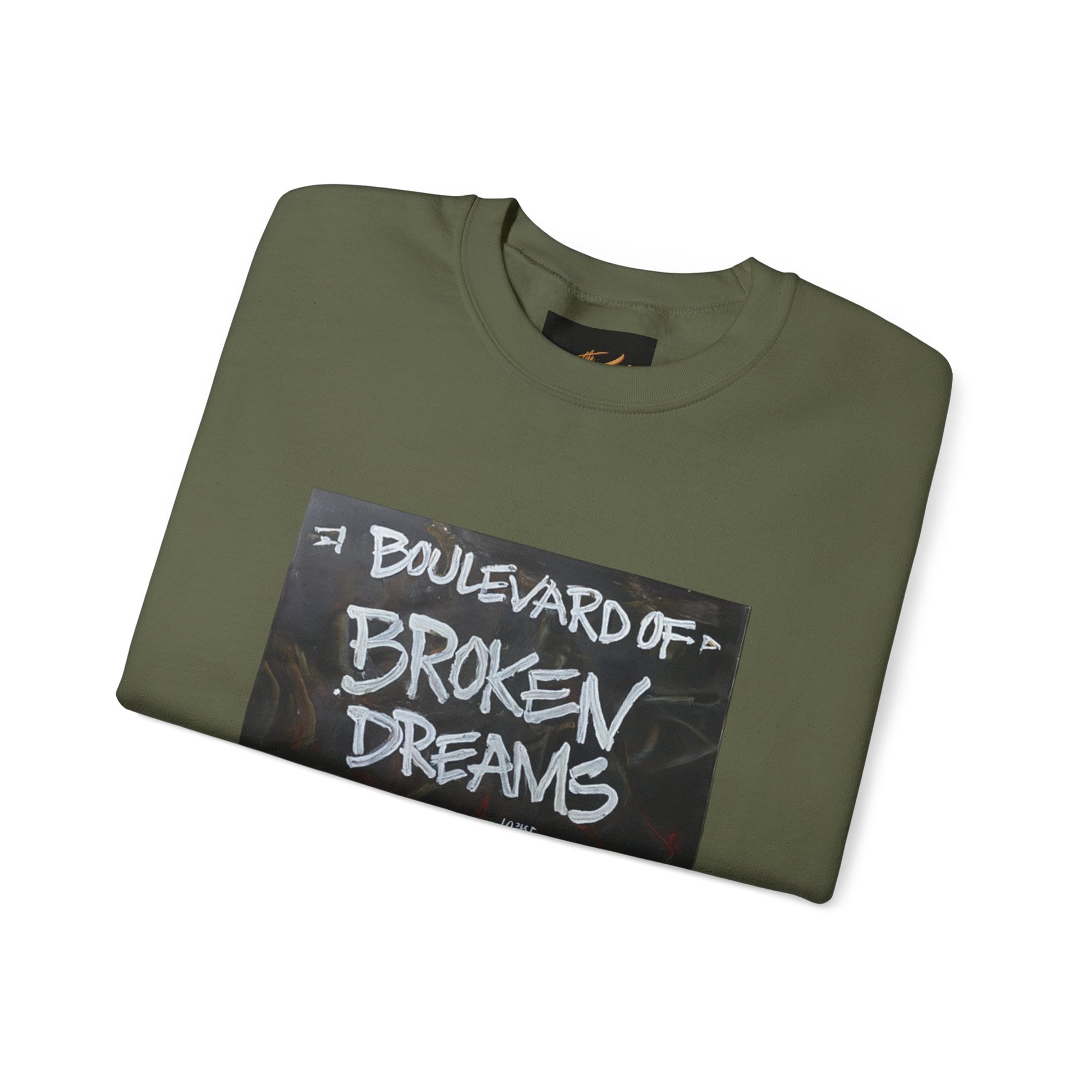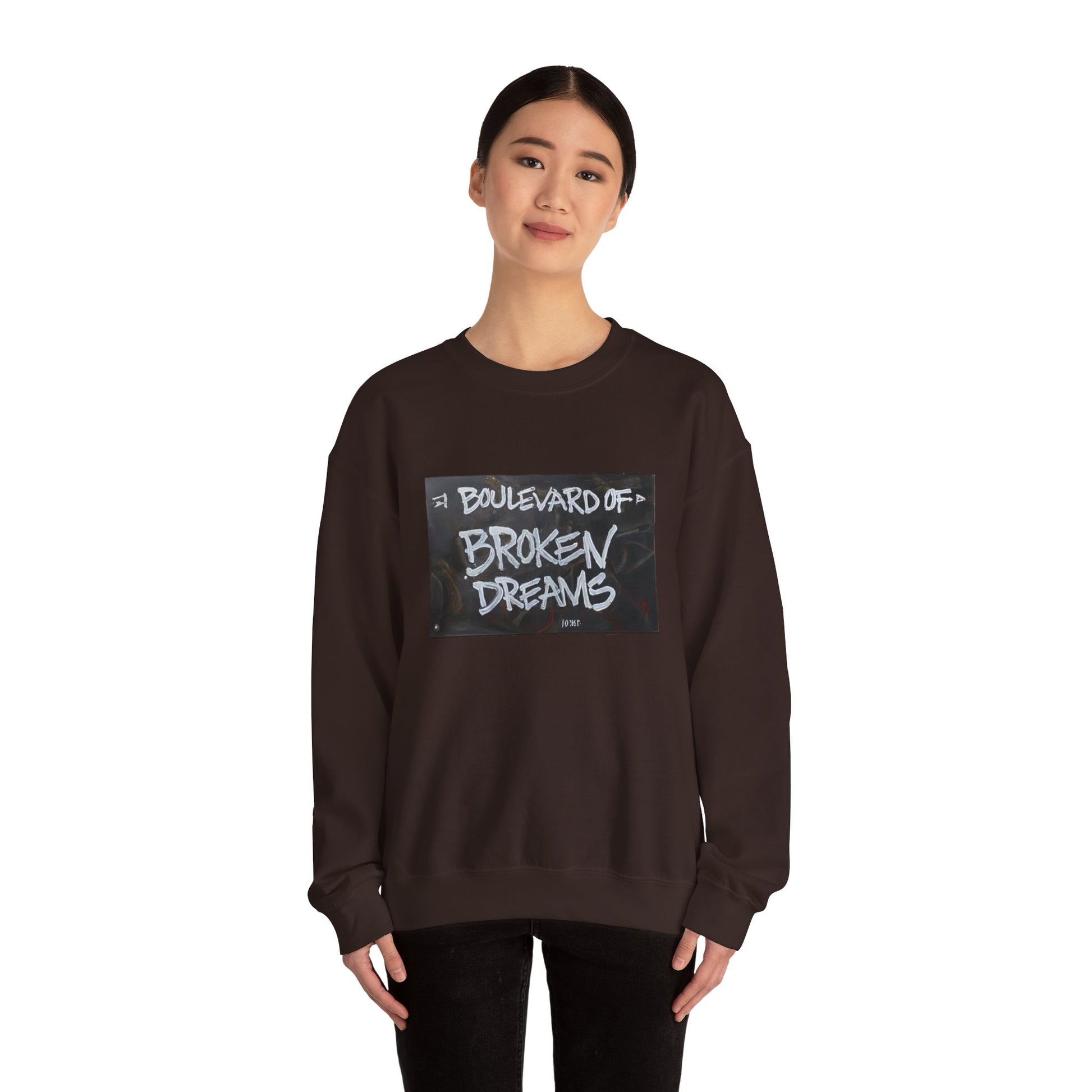 Ideal for any situation, a Boulevard of Broken Dreams  unisex heavy blend crewneck sweatshirt is pure comfort. These garments are made from polyester and cotton. This combination helps designs come out looking fresh and beautiful. The collar is ribbed knit, so it retains its shape even after washing. There are no itchy side seams on these sweaters.